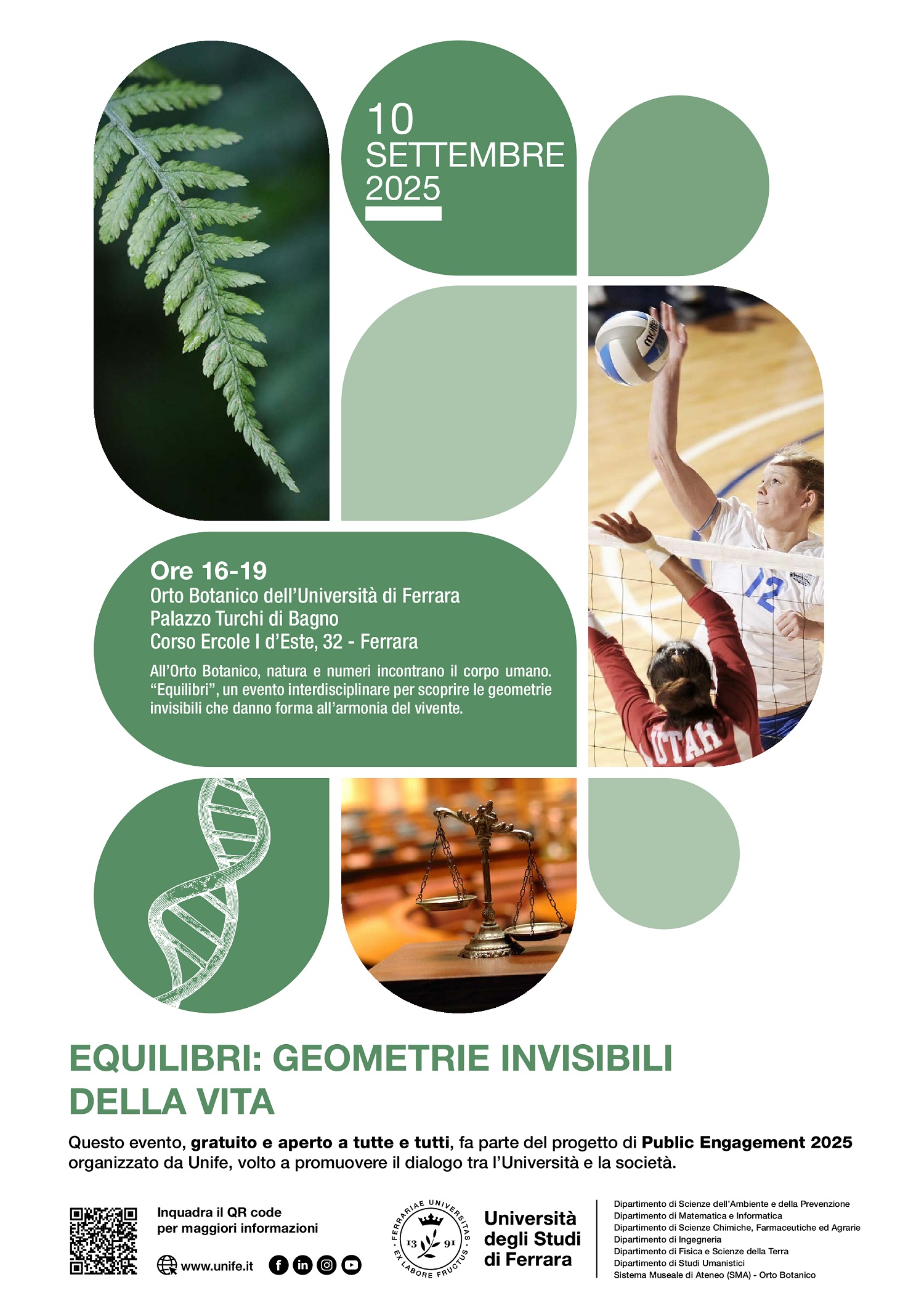 Questo evento, gratuito e aperto a tutte e tutti, fa parte del progetto di Public Engagement 2025 organizzato da Unife, volto a promuovere il dialogo tra l’Università e la società.