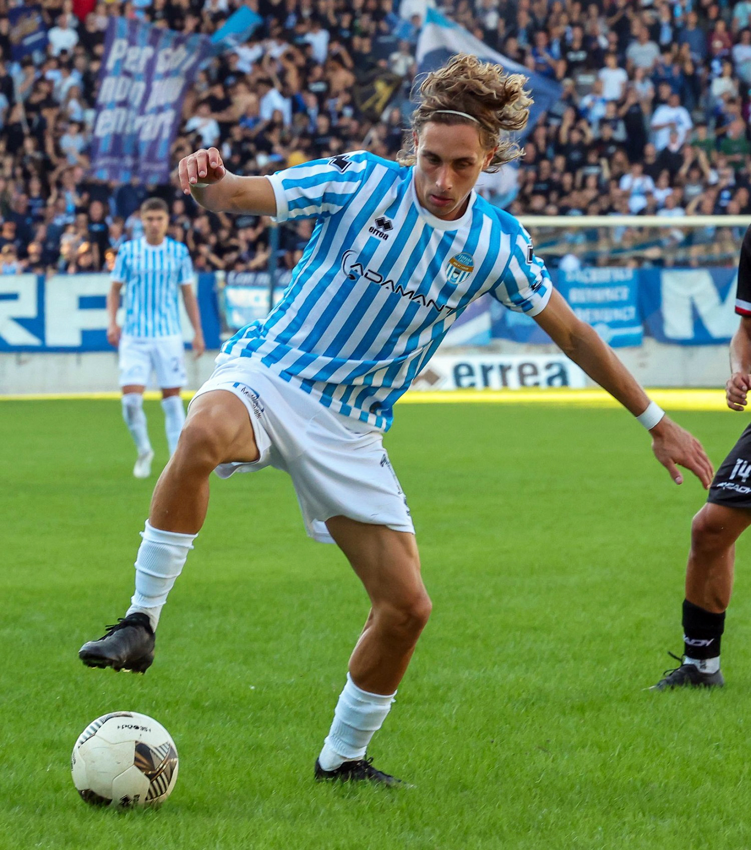 A pochi minuti dal termine del primo tempo, ancora un brivido per i tifosi ferraresi, quando Giacomel in uscita su una palla alta, viene anticipato da Dall’Ara che di testa lo supera, pensando di fare un retropassaggio verso la propria porta, tempestivo l’intervento di mambelli che scalcia il pallone lontano a pochi cetimetri dalla linea di porta, impedendo il raddoppio degli ospiti.