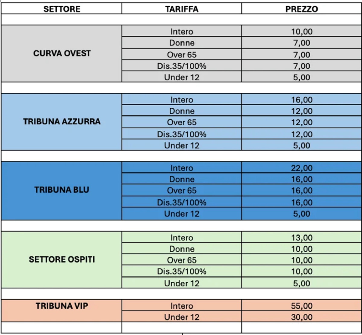 Richieste AIA/FIGC: Il titolo potrà essere ritirato presso il botteghino dedicato allo stadio, in corso Piave angolo via Ortigara, il giorno gara presentando la propria tessera di appartenenza all’Associazione/Federazione in corso di validità, vidimata dall’Agenzia delle Entrate di Roma e il documento d’identità, fino ad esaurimento dei posti disponibili.