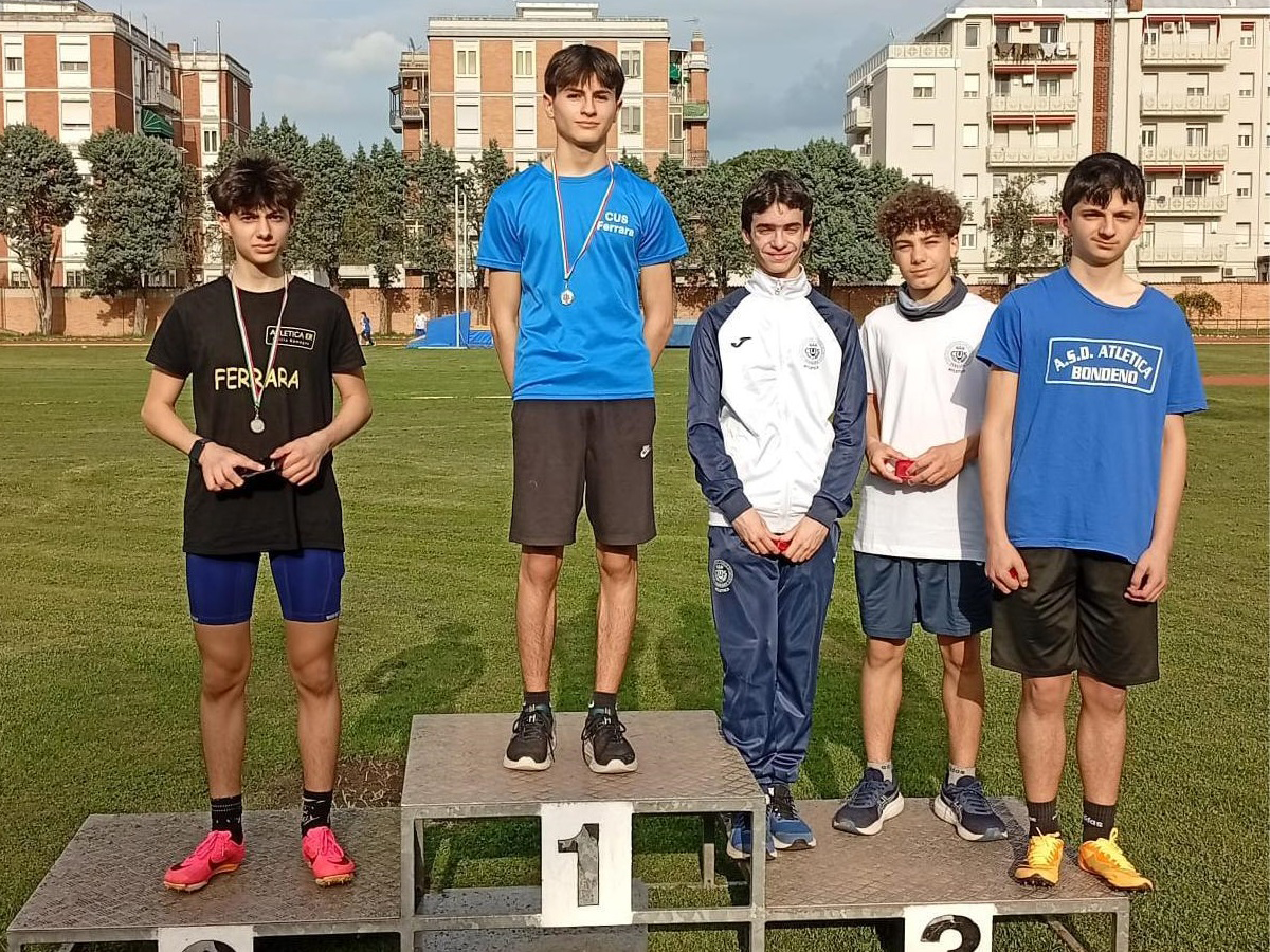 Sempre a Ferrara si sono svolti i “Campionati di Società”, con il programma di gare della prima giornata, la seconda si svolgerà a Bondeno il 6 maggio. Ottimi risultati nelle corse e in alcuni concorsi per i giovani del Cus: in particolare negli 80 m Cadetti il 10.0 di Marco Gaetano Francioso, il 10.6 di Giorgia Zanzi e il 10.8 di Sofia Benericetti negli 80 m Cadette, il buon 53.5 ottenuto dalle Cadette Zanzi, Kona, Lazzarato e Benericetti nella 4×100 Cadette e la misura di 1.90 nel salto con l’asta di Giulia Lazzarato. Buone prestazioni per gli altri Cadetti impegnati nelle loro prove, come il 10.7 di Enrico Sudano e di Fabio Besutti negli 80 m, le misure di 9,34 e 9,03 nel salto triplo rispettivamente per Filippo De Carli e Clementina Merli, e il tempo di 49.5 nella 4×100 corsa da Francioso, Besutti, Oleksiv e Hasan, mentre nella 4×100 B delle Cadette Abbasciano, Picariello, Nachira Haro e Alvisi hanno corso in 57.8.