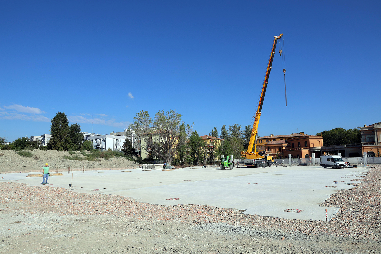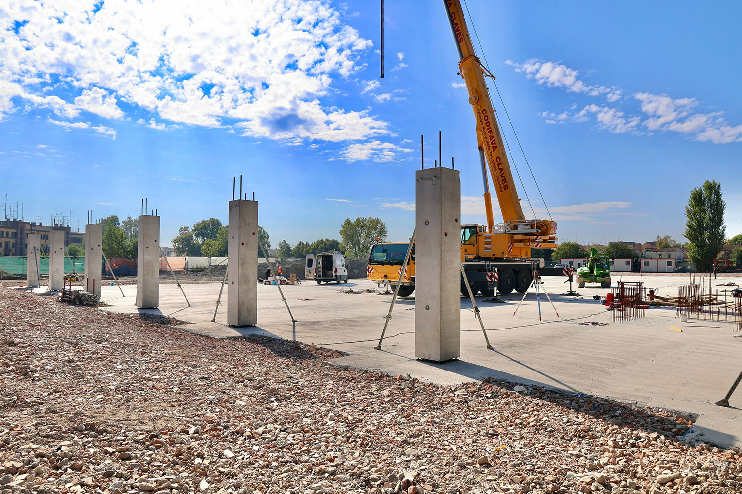 Nella mattinata sono stati infatti posizionati in cantiere i mezzi d’opera necessari e nelle prossime settimane, arriveranno i grandi elementi prefabbricati che comporranno la struttura, le pareti e la copertura. Nel giro di un mese sarà già possibile vedere la sagoma completa del nuovo edificio, che avrà un’impronta di circa 3.100 metri quadrati e dimensioni pari a 42,5 per 73 metri. Il lotto completo è di ben 13.700 mq.
