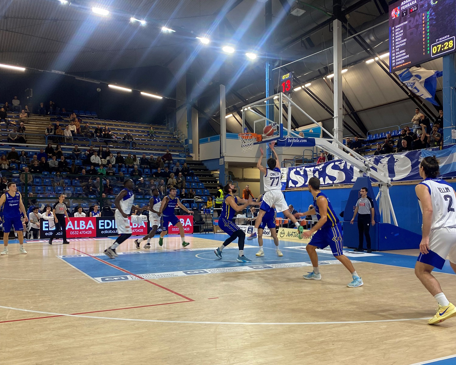 Dopo un primo quarto equilibrato, in cui Casagrande comincia in quintetto e risponde presente con un paio di triple, l’Adamant prova ad allungare nel secondo parziale, grazie agli ingressi di Tio e Marchini che portano un po’ di energia: all’intervallo, dopo aver toccato anche il +9 sul 35-26, Ferrara è avanti 43-36 e appare in controllo del match.