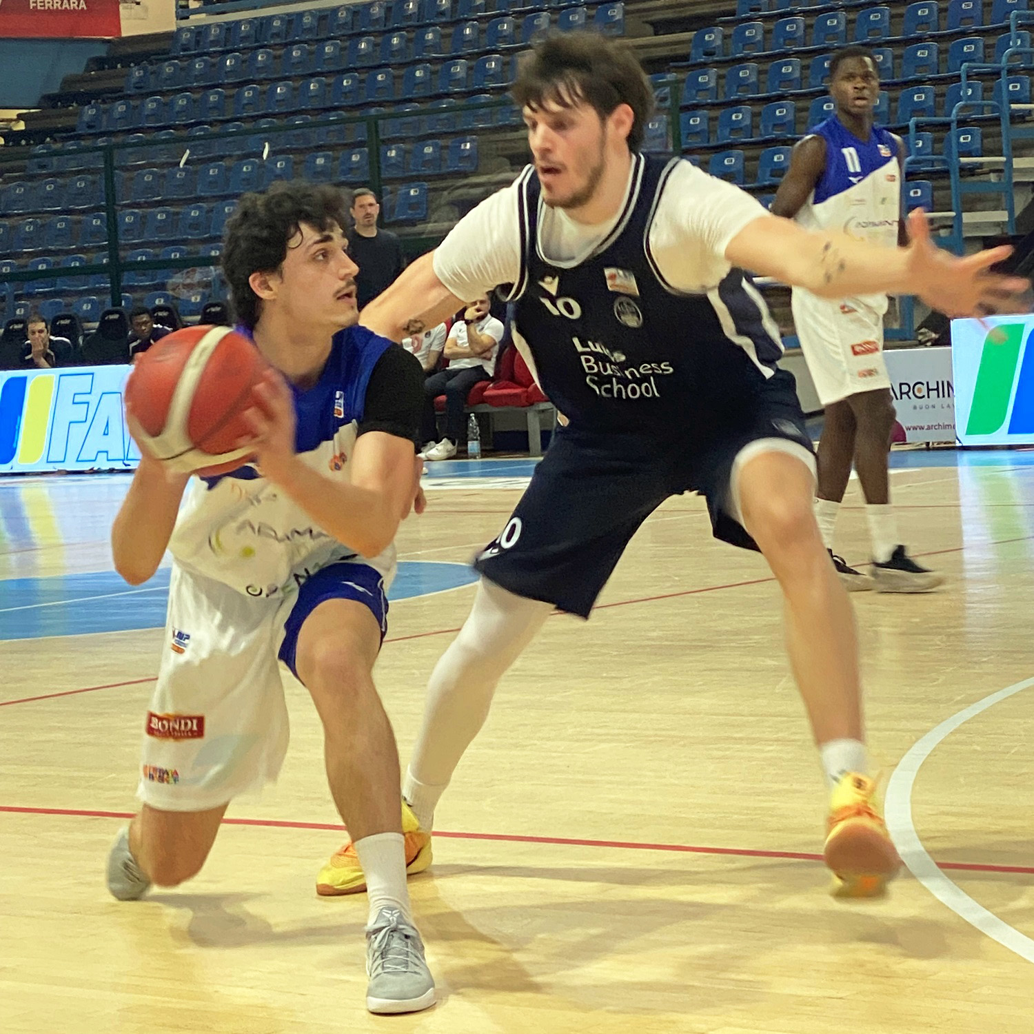 Avvio complicato per Ferrara, che in regia paga la troppa frenesia di Pellicano e costringe Benedetto a fermare il gioco dopo appena sei minuti per evitare l’allungo di una Luiss che è già sul 5-13 a 3’46’’ dalla fine del primo quarto. Santiago prova a scuotere i suoi, ma il talento dei capitolini stronca sul nascere qualsiasi tentativo dei padroni di casa di riavvicinarsi: al 10’ è ancora -8, poi sono cinque punti in fila di Marchini in avvio di seconda frazione a ridare finalmente ossigeno a Ferrara. Ma la Luiss allunga di nuovo con due triple di Jovovic, lasciato troppo libero da Bellini, e al 15’ è doppia cifra di vantaggio sul 24-35; l’Adamant ci prova a restare a galla, Renzi esce fuori nel momento del bisogno e segna dieci punti tutti d’un fiato che consentono ai biancazzurri di limitare i danni all’intervallo (39-45).