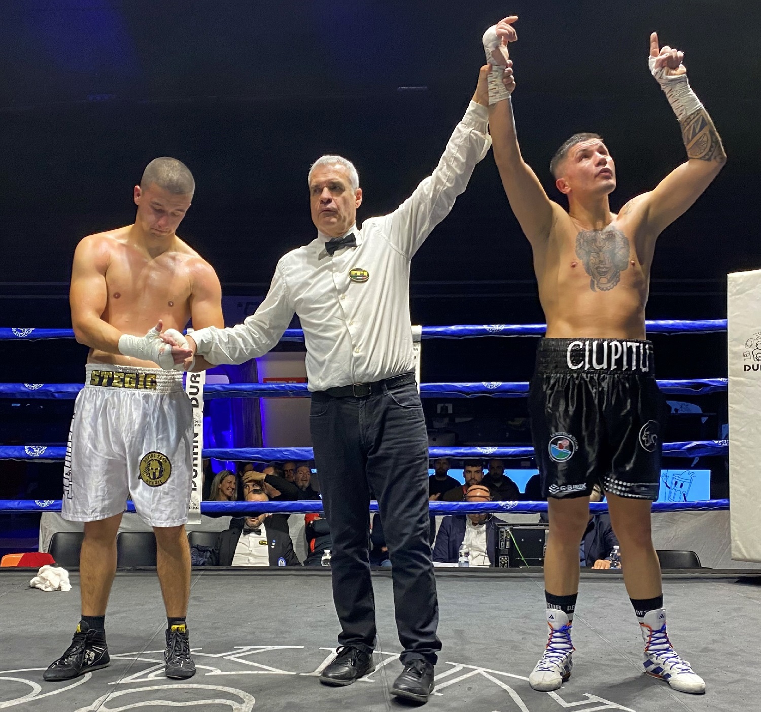 Dopo l’apertura della serata che ha visto tre match molto combattuti di pugilato olimpico, il primo incontro tra professionisti, nella categoria Supermedi al limite dei 76 Kg, sulla distanza delle 6 riprese. Ad affrontarsi Alex Ciupitu dell’Accademia Duran ed il bosniaco Nikolas Panic, un pugile giovane ma con grande esperienza da dilettante ed un numero considerevole, vista la giovane età di incontri disputati da professionista.