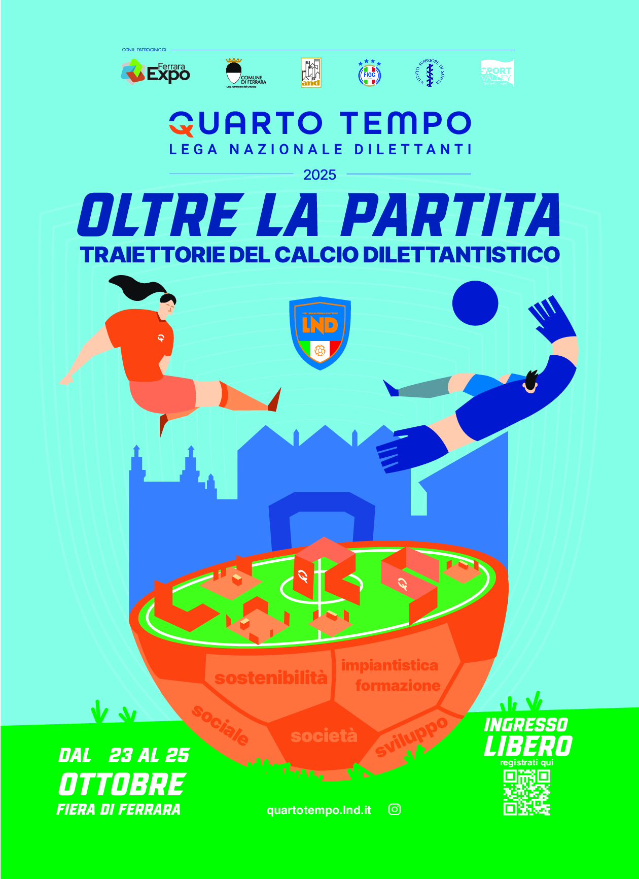 Ferrara si prepara a diventare la capitale del calcio dilettantistico italiano: dal 23 al 25 ottobre 2025, il quartiere fieristico ospiterà la seconda edizione di “LND Quarto Tempo – L’Innovazione del Calcio Dilettantistico”, grande appuntamento nazionale promosso dalla FIGC – Lega Nazionale Dilettanti (LND), con il patrocinio di FIGC, Regione Emilia-Romagna, Istituto Superiore di Sanità, Comune di Ferrara e Ferrara Expo.