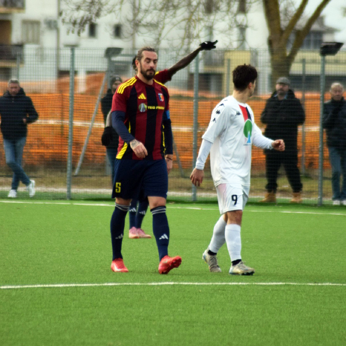 Sull’inedito e insidioso terreno sintetico dei rossoneri, la squadra di mister Borsari, oggi squalificato, riesce a passare in vantaggio nel primo tempo col “cacciatore” Cazzadore, mentre nella ripresa la pressione dei padroni di casa si concretizza nel finale di ripresa col rigore di Colombani.