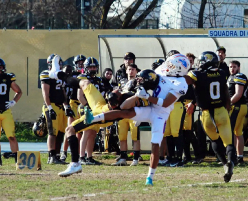 FOOTBALL AMERICANO. ESALTANTE VITTORIA DELLE AQUILE CHE BATTONO GLI SKORPIONS VARESE 42-14