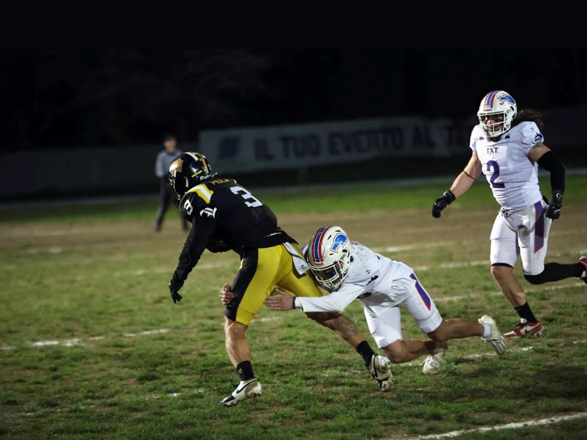 I Frogs Legnano arrivano a questa sfida con due vittorie su due: un netto 49-14 in casa contro i Warriors Bologna e un più combattuto 29-24 in trasferta a Roma contro i Marines Lazio. Due partite, due facce diverse della stessa squadra, capace di dominare quando il gioco gira e di stringere i denti quando serve. I numeri parlano chiaro: 39 punti di media segnati a partita e 19 subiti. Ma il dato che colpisce di più è l’equilibrio offensivo. Con 448 yard totali di passaggio e 351 di corsa nelle prime due uscite, i Frogs presentano un attacco genuinamente bilanciato, che costringe le difese avversarie a scelte difficili su ogni singolo snap. La difesa dei Frogs non è da meno, Legnano ha concesso in media solo 19 punti a partita, un dato che racconta solidità e organizzazione.