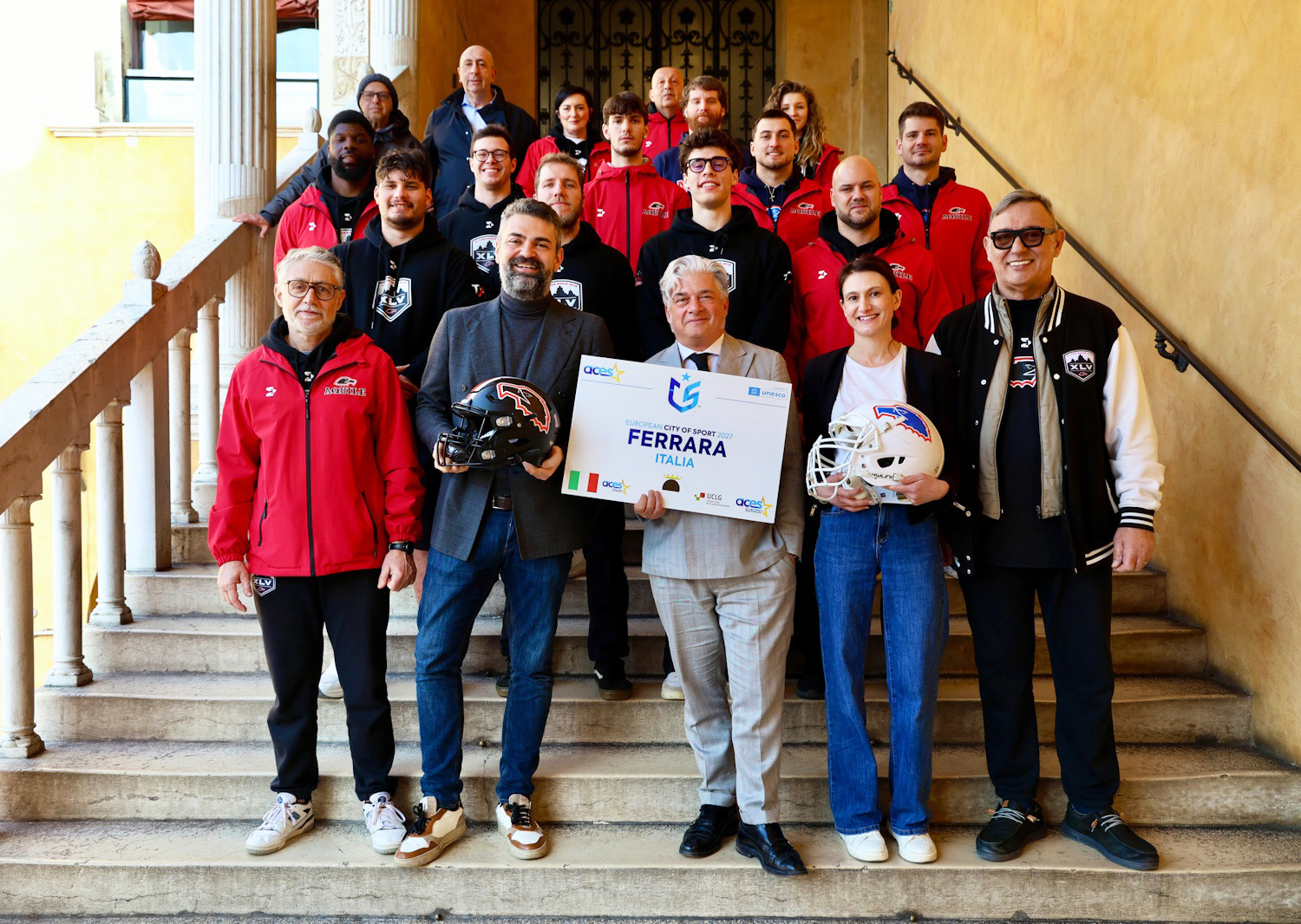 A presentare la nuova stagione alla stampa, presso la residenza municipale di Ferrara, l’Assessore Comunale allo Sport Francesco Carità, il General Manager e referente organizzativo dell’evento Raffaello Pellegrini, il Presidente delle Aquile Alfredo Ferrandino, l’Head Coach della squadra Stefano Zucchelli, la Direttrice Marketing del main sponsor TXT Group Sara Panceri alla presenza di tutta la squadra e del team di tecnici e collaboratori.