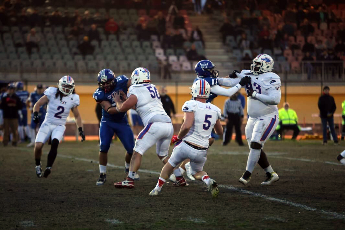 Debuttano vincendo le Aquile nella prima partita di campionato sul campo dei Warriors Bologna; al termine di una gara intensa e fisica, decisa dagli episodi nell’ultimo quarto la squadra estense porta a casa una vittoria più che convincente. Gli estensi partono forte. Dopo aver vinto il coin toss (e aver declinato), l’attacco guidato da Ryan Kraft colpisce subito nel primo drive: passaggio dalle 9 yards per Fabro, touchdown, con extra point di Antochi a segno per il 7-0. Un avvio deciso che indirizza immediatamente l’inerzia della partita.