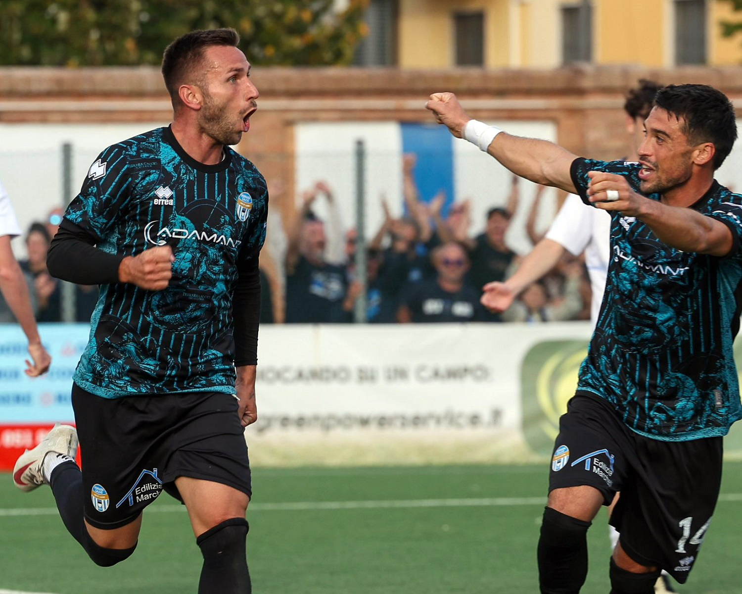 Passano 7 minuti e Moretti, il nuovo attaccante aggregato alla squadra da pochi giorni, mette la sua firma sul poker Biancazzurro e sulla sua partita d’esordio, raccogliendo la corta respinta di un difensore su un cross di Senigaliesi e calciando la palla a fil di palo alla sinistra di Bovo, per il 4-0 conclusivo.