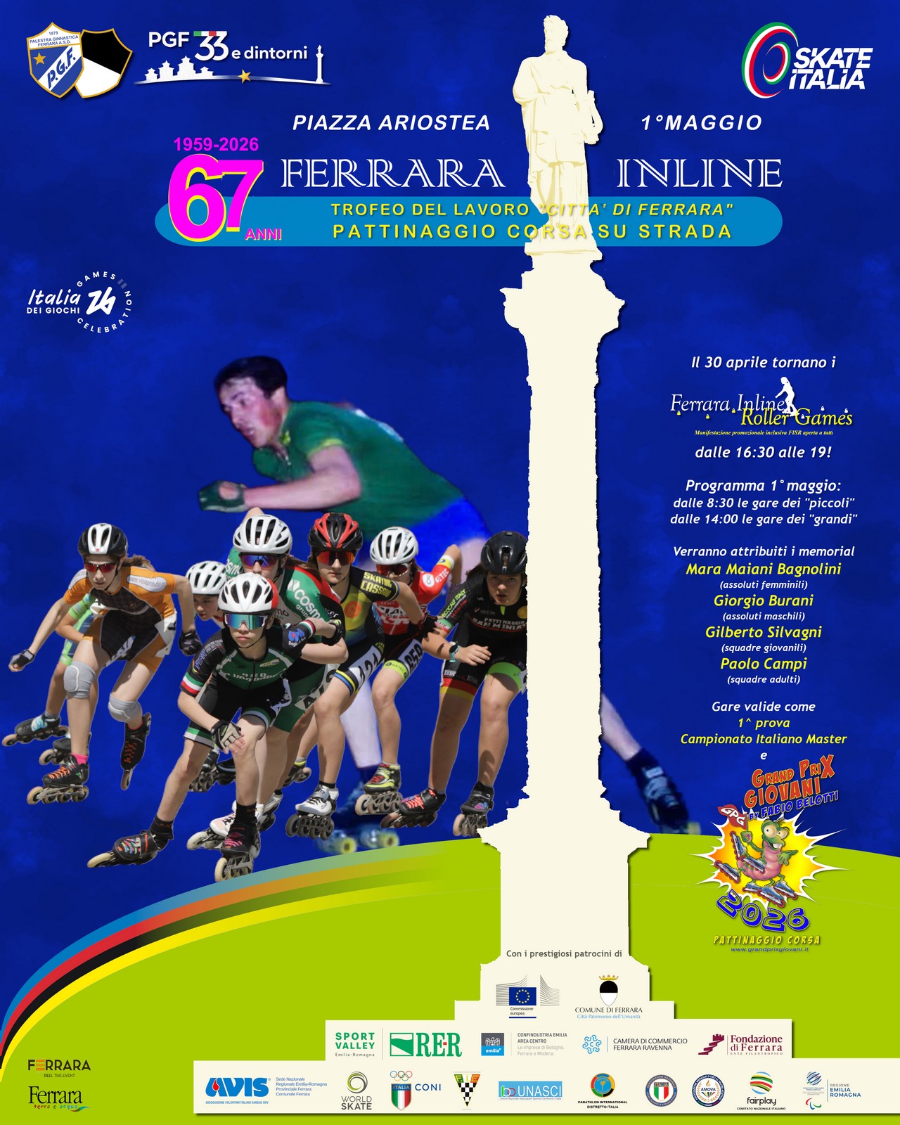 Come preludio alla manifestazione agonistica del 1°maggio, nel pomeriggio del 30 aprile, si terranno gli “Inline Roller Games”, con inizio alle 16.30 e fino alle 18.00 Piazza Ariostea si trasformerà in una vetrina dedicata a tutti gli sport rotellistici, con uno spazio dedicato anche al mondo della disabilità e paralimpico. La manifestazione ha il patrocinio della Commissione Europea, della Regione Emilia-Romagna e del Comune di Ferrara, con tra le altre la partnership di AVIS (Associazione Volontari Italiani del Sangue).