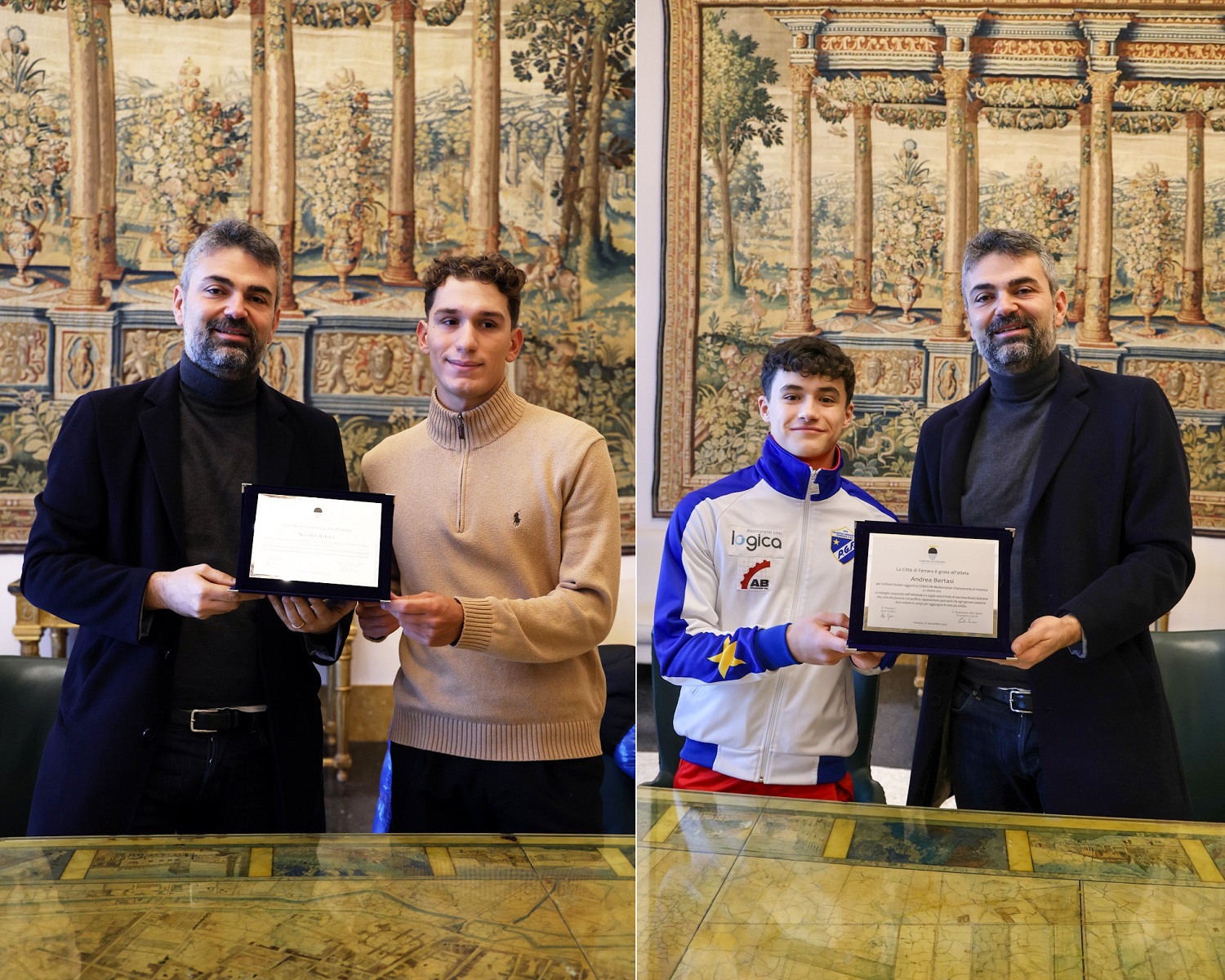 Hanno ricevuto, oggi 27 novembre nella sala degli Arazzi del Palazzo Comunale di Ferrara, una targa di riconoscimento da parte del Comune di Ferarra e del sindaco Alan Fabbri, Nicolò Astori e Andrea Bertasi, due atleti ferraresi che si sono contraddistinti per meriti sportivi. Le targhe, consegnate in 2 distinte cerimonie sono state conferite dall’Assessore allo Sport Francesco Carità.