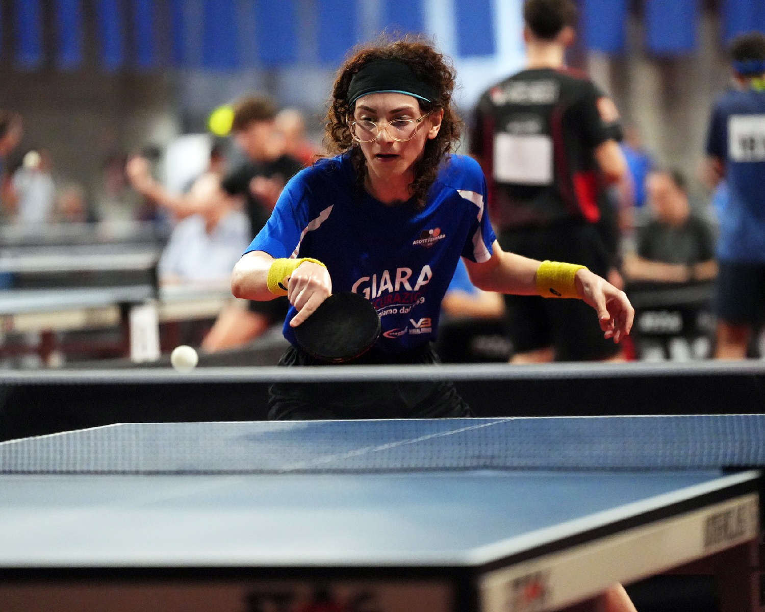 Per una squadra retrocessa in C1, un’altra proprio in C1, ha centrato senza problemi il traguardo della salvezza. Si tratta della Giara Assicurazioni “B”, che ha concluso la sua stagione cedendo per 5-2 (un punto Caravita, un punto Antonucci) sul campo della capolista Colognola ai colli; e mentre in serie C2 la terza formazione del club, retrocessa da tempo, terminava il suo difficile campionato perdendo per 7-0 a Modena contro la Città dei Ragazzi, in serie D2 la Giara Assicurazioni “D” conquistava alla grande la promozione in serie D1, vincendo, proprio nell’ultima giornata, lo scontro diretto in casa dell’Imola e chiudendo il suo girone al primo posto. 4-3 il risultato del match decisivo, con Lorenzo Blasi (foto sopra), 81% di positività nella stagione, capace di battere ai vantaggi del quinto set gli esperti Veterani e Calesini; di Pagliarini e del doppio Blasi-Davi gli altri punti per la vittoria finale. Un salto di categoria assolutamente meritato, cui hanno contribuito, nelle gare precedenti, anche Mordenti e Menini.