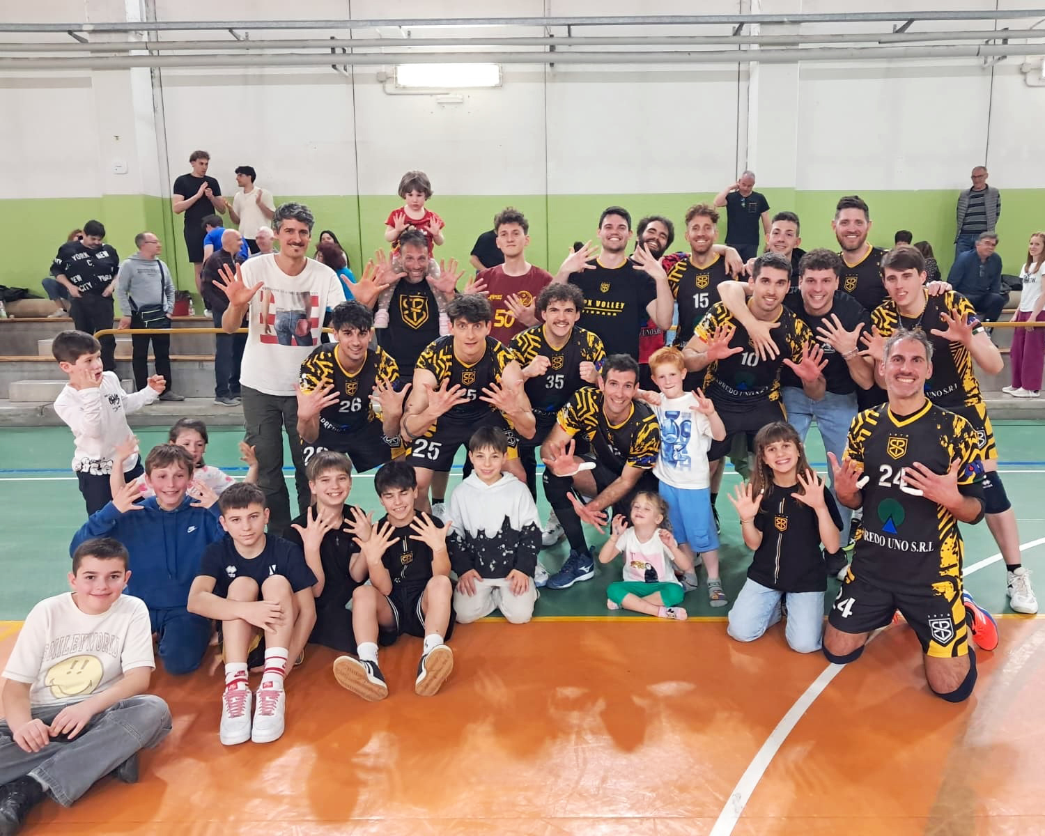 L’inizio è subito ad alta intensità. Il primo set si gioca punto a punto, con continui cambi al comando e un livello tecnico elevato in fase di cambio palla. Nel finale, quando serve lucidità, sono i gialloneri a trovare le giocate decisive e a chiudere un parziale tiratissimo sul 27-25. Nel secondo set il copione non cambia: equilibrio e scambi prolungati, ma la San Pio X riesce a gestire meglio le fasi centrali del parziale grazie a una maggiore continuità in attacco e a qualche errore di troppo degli ospiti. L’Arredo Uno capitalizza le occasioni e allunga nei momenti chiave, conquistando anche il secondo set per 25-21.